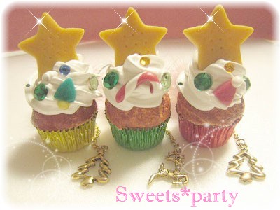 『クリスマス仕様のカップケーキストラップ』