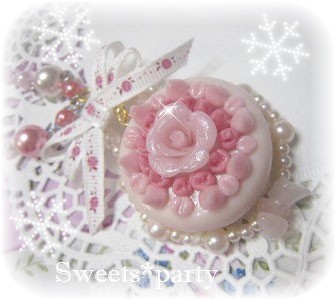ローズケーキの周りにはパールと